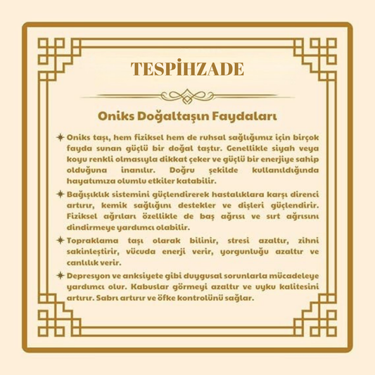 Kararmaz Metal Ayyıldız Püsküllü Küre Kesim Oniks Doğaltaş Tespih