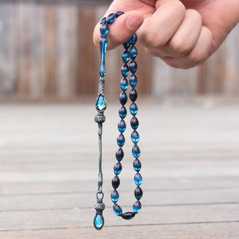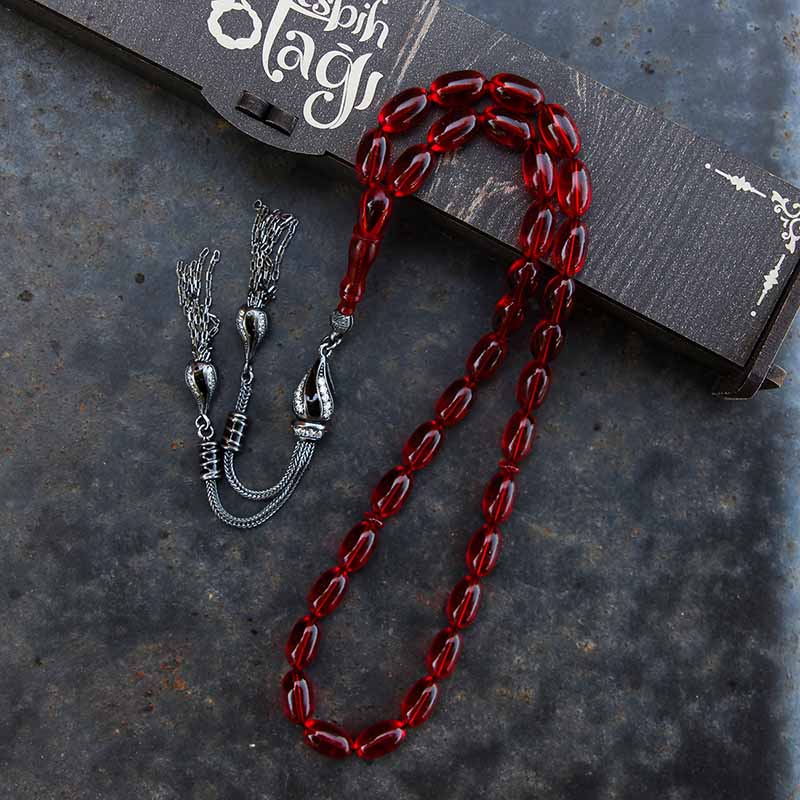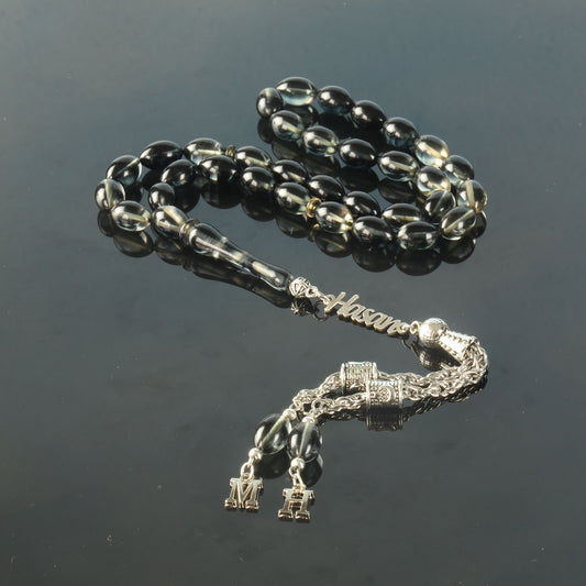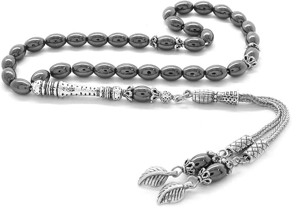Kararmaz Metal Püsküllü Arpa Kesim Hematit Doğaltaş Tespih